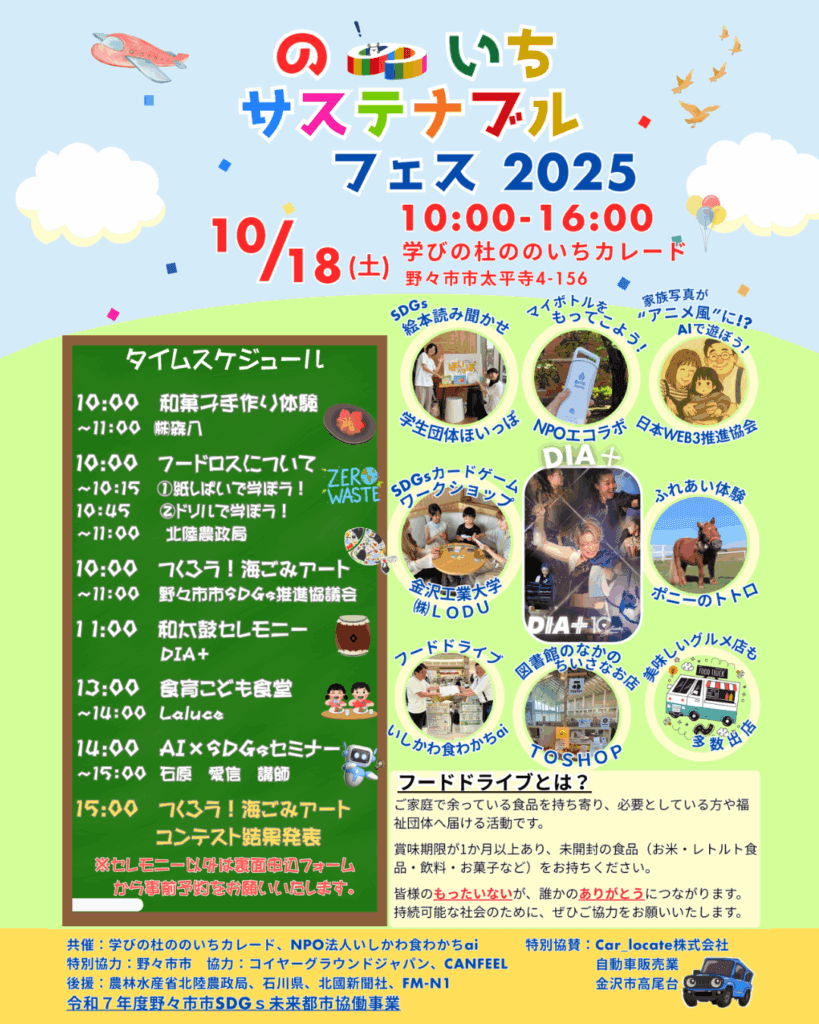 フードドライブの祭典、ののいち・サステナブルフェス2025に今年も出展します!今年は生成AIを使って来場者の家族写真をマンガ風にします。!